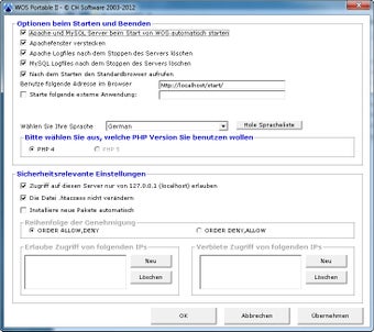 Nach dem Start installiert WOS Portable eine komplette Webserver-Umgebung in ein einziges Verzeichnis. Mit an Bord sind ein Apache-Server samt PHP und MySQL. Das so vorbereitete Verzeichnis lässt sich anschließend auf einen USB-Stick übertragen und mitnehmen.